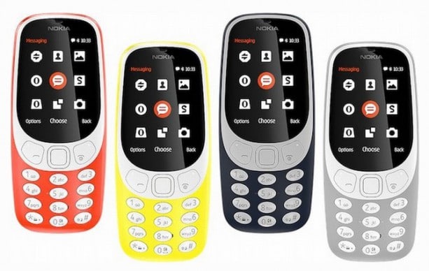 Le Nokia 3310 de HMD dispose d’un écran couleur polarisé incurvé de 2,4 pouces, il intègre une nouvelle interface et un OS conçu par MediaTek. On retrouve un appareil photo de 2 mégapixels, un lecteur mp3, une carte MicroSD (jusqu’à 32 Go) et ce modèle prend en charge la connectivité 2G. Le Nokia 3310 sera disponible en 4 coloris, à savoir : gris, noir, jaune et rouge.