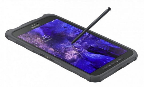 La batterie est elle de 4450 mAh et est amovible, ce qui devrait donc vous permettre de ne pas avoir de problèmes d’autonomie. Enfin, l’écran est une dalle 16/10e de 8 pouces avec une définition en 720p. A noter que la tablette propose aussi des boutons physiques sous l’écran de la tablette. Enfin, un lecteur d’empreintes est aussi présent au centre et un stylet S-Pen étanche lui aussi est fourni.