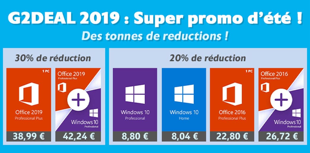 Nous aimerions vous présenter G2deal, une plate-forme de vente en ligne qui se démarque immédiatement par ses prix très compétitifs sur des logiciels réputés, tels que Windows 10, Office 2016 ou Office 2019, et plus encore.