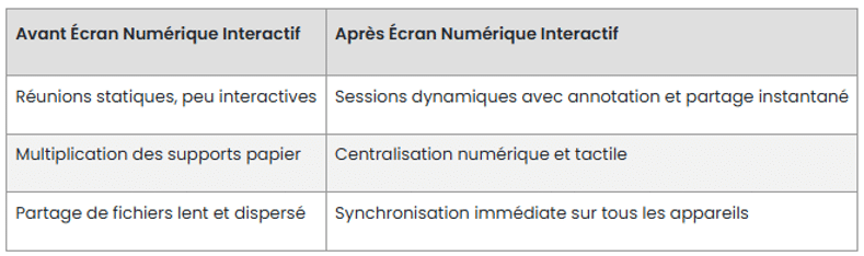 Ces dispositifs, qu’ils soient haut de gamme comme un Surface Hub ou un Samsung Flip Pro, offrent une durée de vie élevée, une efficacité prouvée et un confort d’utilisation au quotidien.