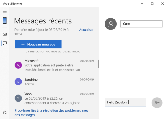 A noter que ce n’est pas Windows ou un service présent dans le Cloud qui se chargera d’envoyer les SMS, ces derniers partiront bien de votre téléphone, Windows 10 se chargera simplement de donner l’ordre à votre téléphone d’envoyer le SMS. Pour cela, il faudra que votre ordinateur et votre téléphone soient connectés au même réseau Wi-Fi.