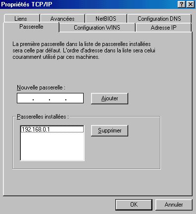 Cliquez sur Nouvelle Passerelle, puis entrez l’adresse IP du PC esclave (normalement, 192.168.0.1, si votre réseau est correctement configuré), enfin cliquez sur Ajouter.
