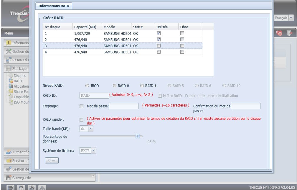 Comme on le voit, Thecus a eu le souci de rester aussi simple que possible, tout en préservant au maximum les performances de son NAS, mais également la sécurité des données lors des manipulations utilisateur.