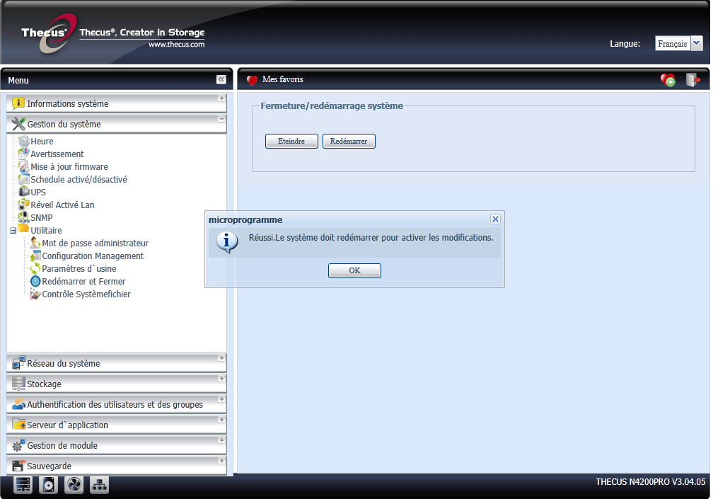 Déjà très claire et conviviale dans sa version 3.04.05 , nous décidons maintenant de mettre à jour le N4200Pro dans sa dernière version firmware disponible, à savoir la version v5.01.05 au moment de la rédaction de ces lignes. Cela va nous donner l’occasion de montrer à la fois la simplicité de mise en œuvre de la mise à jour et le fait que la sécurité des données est assurée.