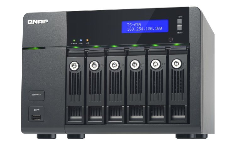 Avec ses 6 baies de disques, le TS-670 se destine clairement au stockage des données, avec un potentiel théorique de 36 To avec les disques actuels.