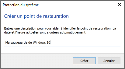 Cette méthode permet de créer manuellement un point de restauration Windows. Voici comment faire :
