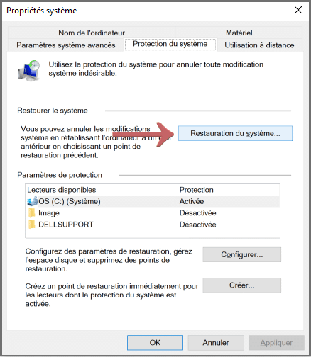 Si le bouton Créer est inactif, cliquez sur Configurer puis sélectionnez “Activer la protection du système”.