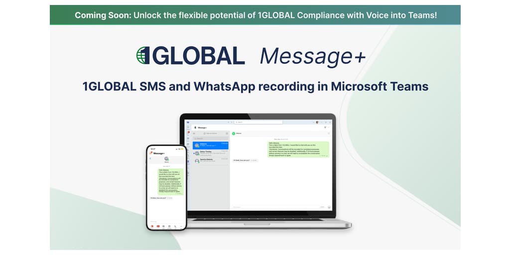 La plateforme 1GLOBAL Message+ permet de relever efficacement à ces défis. Les employés ont la possibilité de communiquer avec leurs clients par SMS et WhatsApp via Microsoft Teams, ce qui permet de mettre en place des flux de travail transparents et conformes tout en maintenant un contact ininterrompu avec les clients, même dans les endroits où l’utilisation des téléphones portables est restreinte, comme les salles de marché. Message+ permet également l’intégration complète de l’infrastructure de communication existante de Microsoft, en soutenant la continuité opérationnelle et l’accessibilité multiappareils.