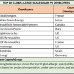 Les 10 premiers développeurs ont contribué à 145 GW de projets solaires opérationnels, en construction et attribués (selon le contrat PPA) au cours de la période de référence. Sur ce total, 49,5 GW de capacité de projet étaient opérationnels, 29,1 MW étaient en cours de construction et 66,2 GW étaient en préparation (selon le contrat d’AAE).