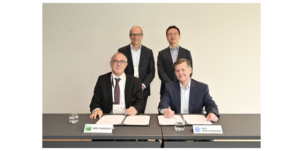 Dans un protocole d’accord signé le 3 juillet 2024 à Zurich par Douglas Feagin, président d’Ant International et Pierre Fersztand, responsable mondial de la gestion de la trésorerie, des paiements, des solutions commerciales et de l’affacturage chez BNP Paribas, les deux parties ont convenu de développer plusieurs initiatives clés qui verront BNP Paribas travailler en étroite collaboration avec Ant International et ses activités de paiement numérique et d’innovation.