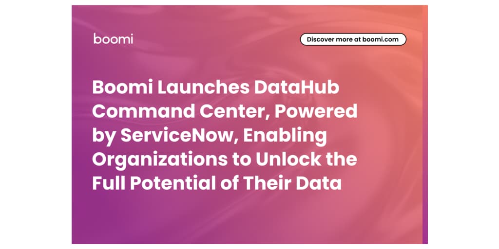 CONSHOHOCKEN, Pennsylvanie–(BUSINESS WIRE)–Boomi™, leader de l’intégration et de l’automatisation intelligentes, a annoncé aujourd’hui la disponibilité générale du centre de contrôle DataHub de Boomi, un nouveau module dans le DataHub de Boomi qui unifie les données provenant de sources variées, simplifie la gouvernance et favorise les informations exploitables. Basé sur les workflows de la plateforme ServiceNow® et entièrement géré par Boomi, le centre de contrôle DataHub de Boomi permet aux entreprises d’exploiter tout le potentiel de leurs données grâce à une visualisation interactive, une traçabilité robuste et une analyse historique.