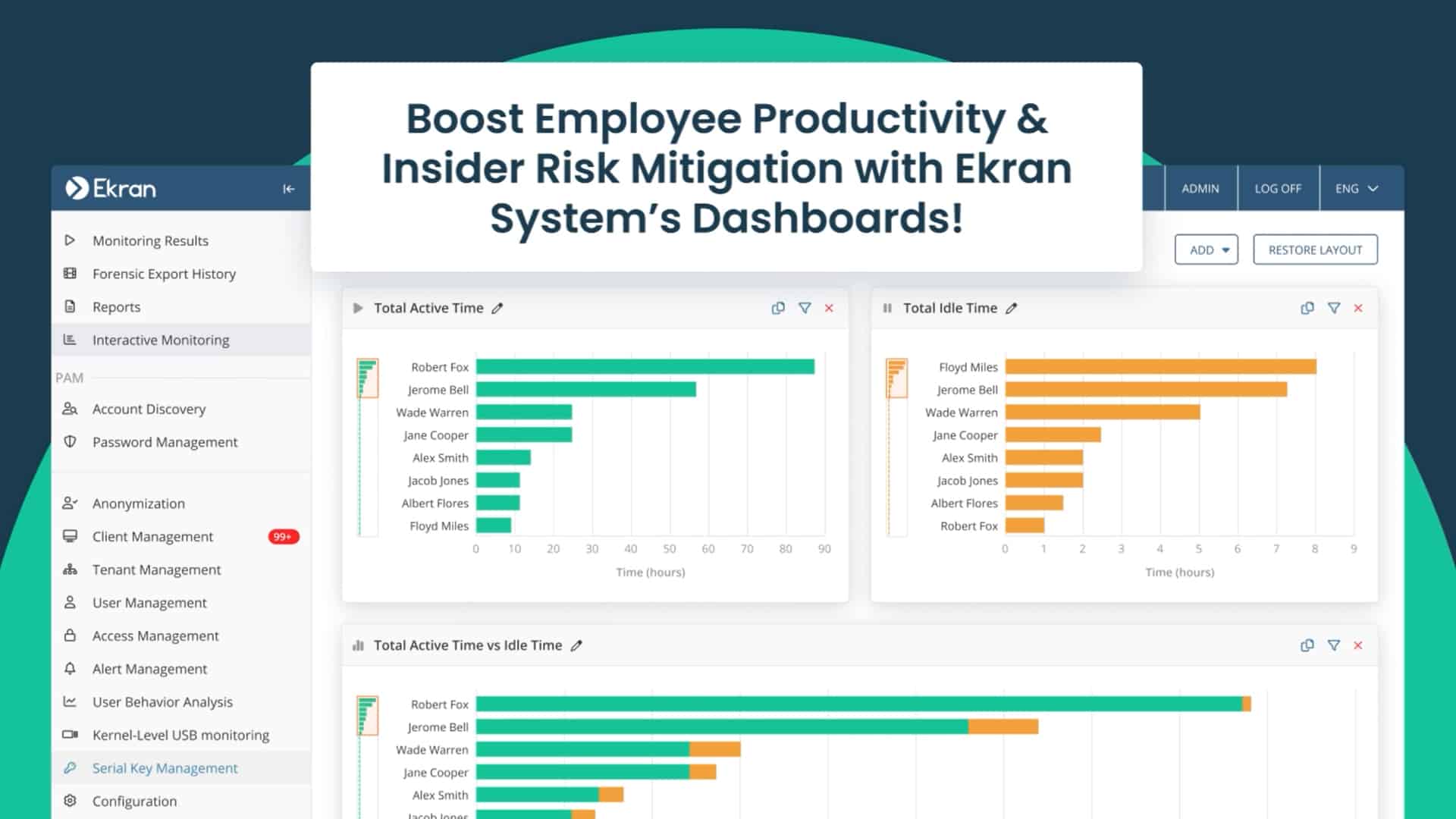 Découvrez les tableaux de bord de productivité et les fonctionnalités UAM/PAM d’Ekran System en action !