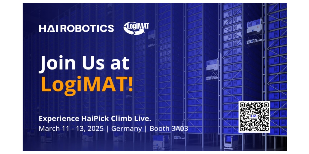 STUTTGART, Allemagne–(BUSINESS WIRE)–Hai Robotics, leader mondial de l’automatisation intelligente des entrepôts, s’apprête à présenter HaiPick Climb pour la première démonstration pratique en direct au salon LogiMAT 2025 à Stuttgart, en Allemagne. Cet événement marque le début physique mondial du dernier ajout au portefeuille de systèmes HaiPick primés de Hai Robotic, ce qui offre aux participants la possibilité d’observer en exclusivité le système en action.