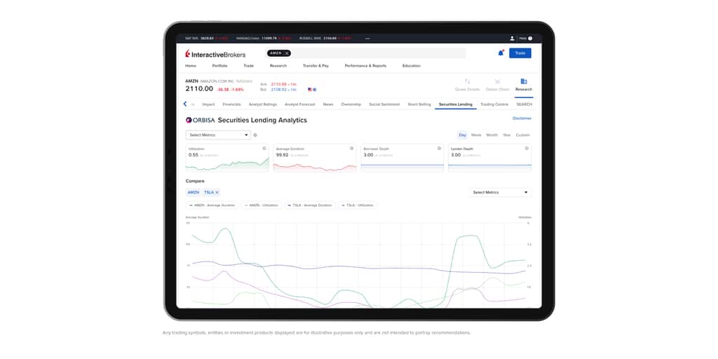 Optimisées par Orbisa, les nouvelles données de prêts de titres comprennent des informations sur les titres négociés en Amérique du Nord, en Europe et en Asie et sont fournies à tous les clients d’Interactive Brokers via Fundamentals Explorer sur la plateforme Trader Workstation. Les clients peuvent désormais utiliser à la fois le Securities Lending Dashboard, ainsi que le système Securities Loan Borrow existant, qui comprend la quantité, le nombre de prêteurs et les taux d’emprunt indicatifs actuels pour les titres basés sur les avoirs des clients d’IBKR.