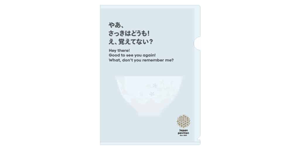 Des chemises transparentes Green Planet seront également offertes(*2) au Japan Pavilion. Green Planet est un matériau recyclable qui peut être produit à partir de biomasse et de CO2, et qui est décomposé par des micro-organismes vivant dans divers environnements, y compris le sol et l’eau de mer, puis retourne à la nature sous forme de CO2 et d’eau. En obtenant des matériaux pouvant contribuer à résoudre le problème de la pollution environnementale causée par les plastiques, vous aiderez à passer le relais du recyclage, que nous commencerons au Japon.