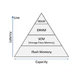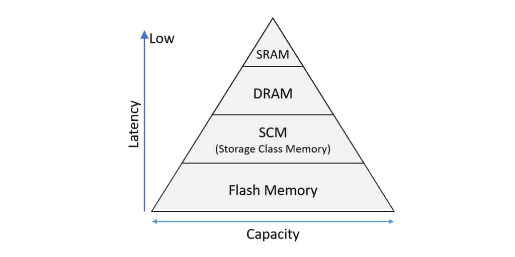 Les systèmes informatiques actuels utilisent la DRAM, un dispositif de mémoire primaire permettant au CPU de rapidement traiter les données, ainsi que la mémoire flash pour stocker de grandes quantités de données. Kioxia est à la tête de la recherche et du développement de la Storage Class Memory (SCM), une solution mémoire positionnée entre la DRAM et la mémoire flash dans la hiérarchie des mémoires à semi-conducteurs, conçue pour gérer des volumes de données plus importants que la DRAM et à une vitesse supérieure à celle de la mémoire flash.