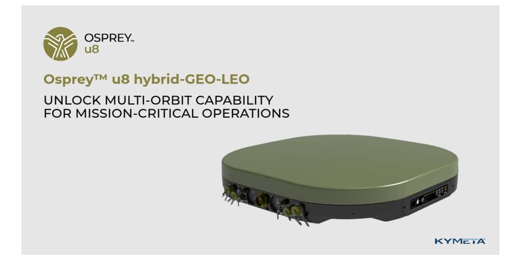 Le Kymeta Osprey™ u8 HGL, un terminal hybride GEO-LEO basé sur une expertise éprouvée des communications résilientes pour environnements militaires exigeants, sera disponible sur le marché au début du premier trimestre 2024