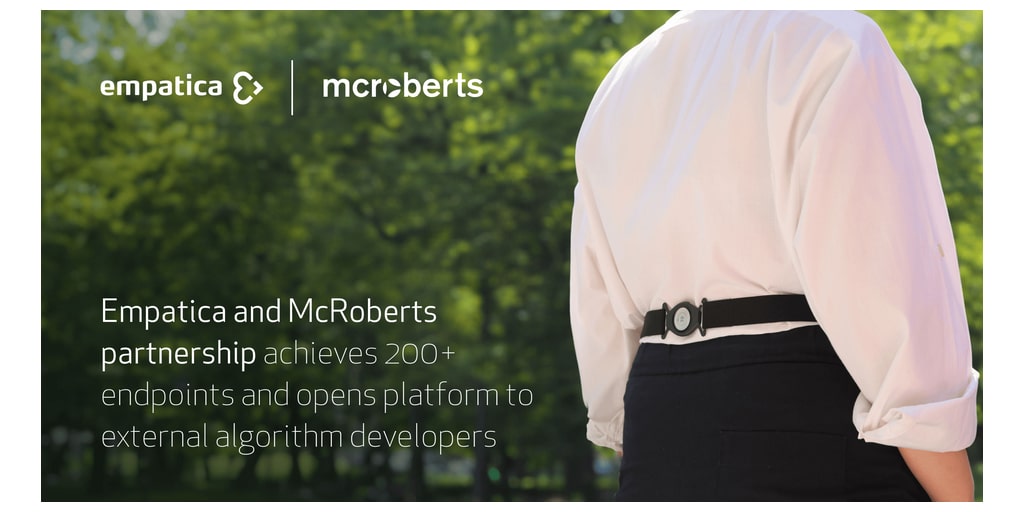 BOSTON–(BUSINESS WIRE)–Empatica, pionnier du développement de biomarqueurs numériques et du suivi des patients grâce à l’IA, et McRoberts, l’un des leaders du suivi ambulatoire de l’activité physique, annoncent l’intégration des 71 paramètres de McRoberts dans le portefeuille de biomarqueurs numériques d’Empatica et dans sa plateforme agréée par la FDA, portant ainsi son offre totale à plus de 200.