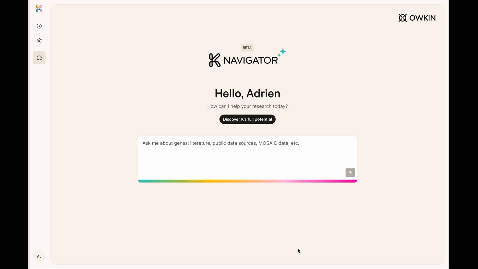 NEW YORK & PARIS–(BUSINESS WIRE)–Owkin, une entreprise leader dans le domaine de l’IA agentique, a lancé K Navigator, un copilote de recherche basé sur l’IA conçu pour révolutionner la science biomédicale. K Navigator est un terrain de jeu agentique où les chercheurs peuvent explorer, affiner et valider des hypothèses, accélérant ainsi la qualité et le rythme de leurs découvertes. Avec K Navigator, Owkin se rapproche de son objectif de développer la première superintelligence biologique artificielle (BASI) au monde.