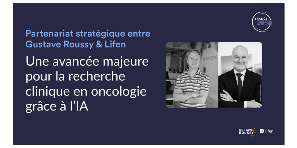 PARIS–(BUSINESS WIRE)–Gustave Roussy, premier centre de lutte contre le cancer en Europe, quatrième mondial, et Lifen, startup experte en IA et solutions de e-santé, sont fiers d’annoncer la signature d’un accord cadre visant à faciliter et accélérer les projets de recherche clinique. Un partenariat qui s’inscrit dans le plan France 2030, pour faire de la France le pays leader de la recherche clinique en Europe.