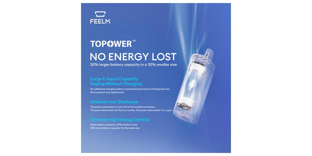 TOPOWER a été incorporé à deux solutions – la solution jetable à bobine céramique FEELM Max et la solution à bobine à mèche de Power Alpha – afin de réduire au maximum l’anxiété liée à une batterie faible. FEELM Max et Power Alpha ont déjà été largement commercialisés et ont rencontré un succès considérable dans de nombreux pays. La valeur commerciale ajoutée par les solutions et la technologie crée une kyrielle de possibles pour les marques.