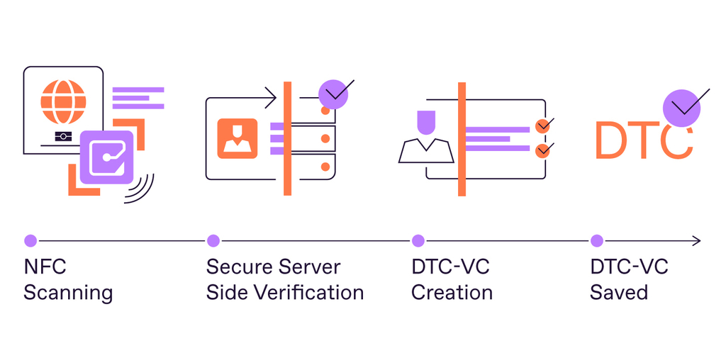- lire la puce RFID du document avec un téléphone intelligent ou un lecteur de passeport et créer un DTC-VC ;