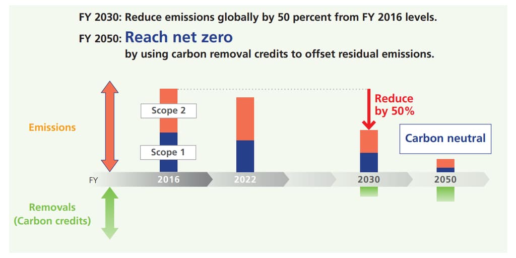 • Parvenir à des émissions nettes nulles pour l’ensemble des opérations d’ici à l’exercice 2050.