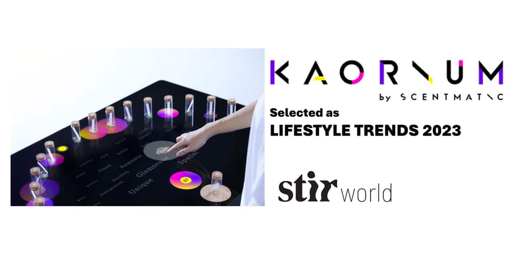 TOKYO–(BUSINESS WIRE)–SCENTMATIC Inc (CEO : Toshiharu Kurisu, siège social : Tokyo, Japon), qui propose de nouvelles expériences client à travers la numérisation des parfums, annonce que KAORIUM, son service d’IA qui exprime les senteurs grâce à des mots, a été retenu dans la publication « Retracer les innovations et idées qui ont façonné les tendances de style de vie en 2023 » de STIRworld.com, un magazine numérique mondial de premier plan dans les domaines du design, de l’architecture et des arts.