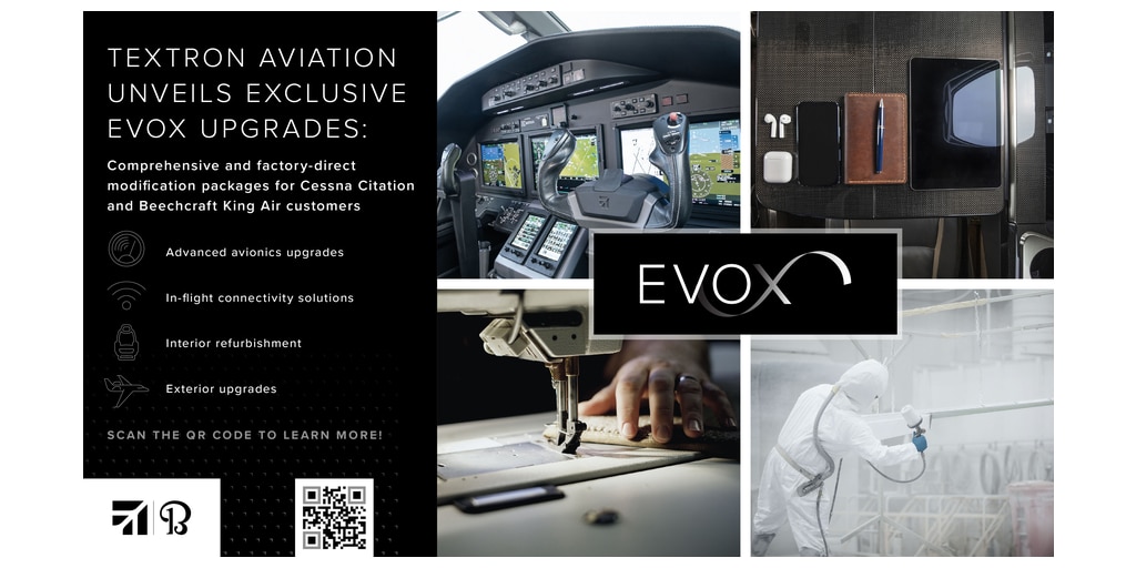WICHITA, Kansas–(BUSINESS WIRE)–Textron Aviation a annoncé aujourd’hui le lancement d’ « EvoX », des packs de mise à niveau spécialisés pour le marché secondaire, conçus pour les clients de Cessna Citation et de Beechcraft King Air qui recherchent les dernières mises à niveau et modifications pour maximiser la valeur de leur avion. EvoX permet aux clients de combiner une avionique de pointe, des solutions de connectivité d’avant-garde, des rénovations intérieures luxueuses et exclusives et des améliorations extérieures soignées en un seul lot de modifications complet et facile à programmer.