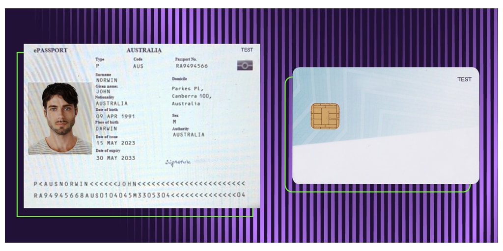 En fonction des besoins opérationnels et des objectifs commerciaux d’une entreprise donnée, Regula crée un kit de test de documents d’identité avec des puces NFC qui sont personnalisées avec les données d’identités fictives ou celles fournies par le client. En plus de la puce, une zone visuelle et une zone de lecture automatique (MRZ) peuvent également être générées pour permettre de robustes vérifications croisées et tests du système. Ces pièces d’identité de test sont des images simplifiées (avec des marques spéciales pour montrer que ce ne sont pas des reproductions complètes) des pages requises des documents que la société envisage de vérifier. Elles sont étayées par des modèles correspondants dans une version spéciale de la base de données, de sorte que la solution IDV puisse les reconnaître correctement.