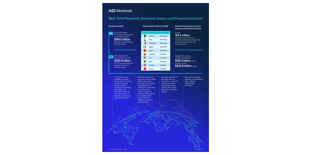 OMAHA, Nebraska–(BUSINESS WIRE)–Les paiements en temps réel devraient générer une croissance supplémentaire du PIB mondial à hauteur de 285,8 milliards de dollars et créer plus de 167 millions de nouveaux titulaires de comptes bancaires d’ici à 2028, selon un nouveau rapport publié par ACI Worldwide (NASDAQ : ACIW), innovateur original en technologie des paiements mondiaux, en collaboration avec le Centre for Economics and Business Research (Cebr).