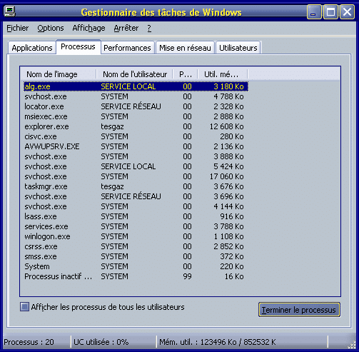 Redémarrons le système en mode normal et regardons ce que nous indique le gestionnaire des tâches :
